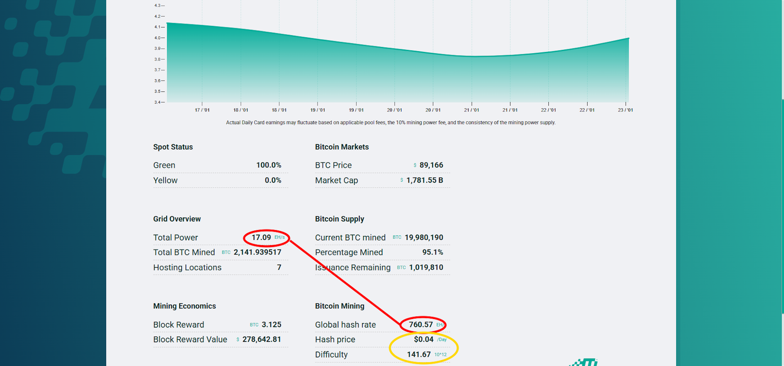 Während die Hash-Rate von Mining Race weiter auf 17,09 EH/s gestiegen ist, sank die globale Hash-Rate deutlich auf 781,7 EH/s. Damit hat Mining-Race inzwischen mehr als 2 % der weltweiten Hash-Rate erreicht.
